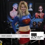 While many great celebrities were in attendance as well, the focus of the convention was very much on the fans, the cosplay, the comics, and the general celebration of comic art. The convention had a number of cool exhibits and booths. One that stood out was a silent auction benefiting Sick Kids, which had a cool array of comic and vintage items, including Marvel posters and Disney artwork. Another cool area was the Liquid Imprints body painting booth run by Aaron and Melanie Knox, where they live-painted models and transformed them into various superheros; some photos can be seen below (Video of their work coming soon!).